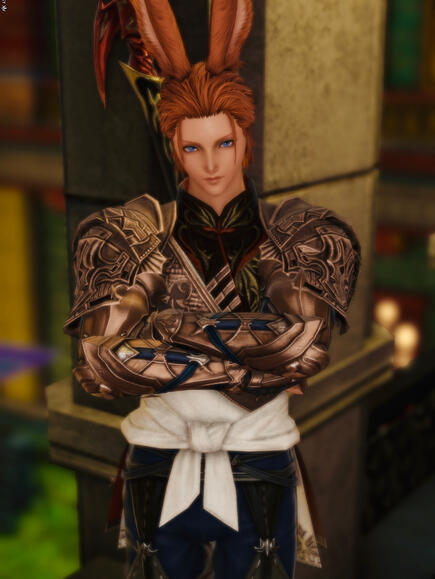 Johnathan was born in Sharlayan Colony in the Dravanian Hinterlands, to parents who were themselves Sharlayan scholars. He grew up an adventurous soul, always testing the boundaries of his range. While he wasn't exactly gregarious, he was definitely a helpful soul. Crossing social boundaries between the jocks, the scholars and everyone in between, he didn't seem to have a hurtful bone in his body. Occasionally that would get him into trouble of an unintended nature, but he always seemed to have friends with their own sort of resources to help him out.His adventurous nature led him towards being a gleaner, where he could expand his horizons. At first, as a junior gleaner, he was just what the doctor ordered. Helpful to a fault, he truly enjoyed getting out there and lending a hand. He also seemed to lean towards listening and recording stories, so when they promoted him to a full-fledged gleaner, his job became to collect the lore of the land, to preserve it for future generations and for study back in Old Sharlayan. Unfortunately, going out on his own became fraught with a new kind of peril.As he went out into the world to collect the lore of the land, he often heard other stories. Stories of people in need. People under threat. People who needed a helping hand. A helping hand that Johnathan was only too glad to provide. In some ways, it made his job easier. People were more likely to pass along their stories to a friend than some nameless, studious stranger. On the other hand, the Sharlayan policy was one of passive observation, to not interfere in the natural course of events. So when word finally got back to the Gleaner's Guild, that's when the trouble really started.At first, it was gentle reminders that Sharlayans are meant to observe the events of the world, not participate in them. Still, his helpfulness would not abate. Then it became gentle yet formal reprimands. Still, Johnathan was unheedingly helpful. It was around the time that something more drastic was about to be done however, when the Great Exodus occurred. Johnathan was angry about it, Eorzea being all he had ever known. He didn't think they should have left. As much as he didn't want to go however, he left with the others and regretted it for years since.Once he was in Old Sharlayan, it was at once familiar yet unknown to him. The architecture was the same, the Forum was definitely the same, but the lay of the land both geographically and politically was far different. Everyone he knew from Eorzea was gone. Everyone he knew from the Sharlayan Colony blended into new jobs, made new networks, and seemed to spread out like a drop of ink in a glass of water. Meanwhile, he seemed to sink to the bottom of the glass, unable to dissolve. His superiors decided that rather than have him continue in field work, he should instead be relegated to Labyrinthos, cataloging flora and fauna, assisting with agriculture, everything but the things it felt to him like he was meant to do.He put up with this state of affairs for quite a while, rarely ever getting anything to do past the Outer Circuit, occasionally making trips to the Isle of Haam, but never leaving the Sharlayan archipelago. Everyone could see that he was itching for more, that he was capable of so much more, but they were determined to leave him in this state lest he go galavanting across the countryside being 'helpful' again. Then the 7th Umbral Calamity struck. Its effects outside of Eorzea muted by the efforts of Louisoix and the Warriors of Light, life just seemed to continue on in Sharlayan, careful and observant. However, for Johnathan, that's when things began to crack.A Senior gleaner, a Viera and father to a friend, tried to take Johnathan under his wing. He was known for solving hard luck cases, listless gleaners that were having trouble finding their niche. Being given the attention, and with recent events having stirred something in him, he decided to pour himself into the tasks this Senior gave him. trying to burn off all this nervous energy that had been building up inside of him. At first the Senior beamed at how Johnathan was progressing, and started to give him a few retrieval assignments beyond the archipelago. That's when disaster struck, however.The reports had started coming in that a particular gleaner was being helpful with the foreign populace again. He was doing more than his assigned task and otherwise being observant. When the senior pulled Johnathan aside, he noted something different. Besides the fire in his eyes, he noted a sword at his hip. He wasn't authorized to arm himself, and it went against everything he was taught about Sharlayan pacifism. A nearby Forum member, one Fourchenault Leveilleur, noted the conversation and approached to question the wayward gleaner personally.The conversation was heated, and at one point it all came to a head. "To ignore the plight of those one might conceivably save is not wisdom, it is indolence," Johnathan recited, staring down both his superiors in defiance. Hearing those words, Fourchenault immediately requested that Johnathan's conduct be reviewed by the Gleaner's hierarchy and his continued employ be called into question. Johnathan made the decision for them then and there, shocking both with his immediate resignation. Dropping his pack at their feet, he stormed off for his home. It wasn't long before he'd settled his affairs, found a change of clothing more suitable for the Viera of the Three Great Continents, packed up his meager belongings and set forth on the next ship bound for Eorzea.It was during that trip fate would step in once more. A storm set the seas a flutter, with most of the passengers down in the ship's hold. The storm masked the arrival of some of the sea's nastier, natural denizens and a battle ensued upon the deck. Johnathan held no hesitation as he stepped out, witnessing sailors trying to fend off the horde while at the same time prevent the ship from going down with all hands. Bla